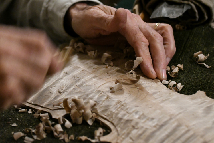Douglas Cox began construction on “The VSO violin” during the opening night of our 2016/2017 Masterworks season. You can follow the entire process from start to finish on Doug’s Blog, and follow the progress in person at our Masterworks concerts this season! The finished instrument will be strung and played at the final Masterworks concert of the series, on May 6th at Flynn Center for the Performing Arts.